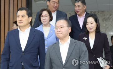 박 정책위의장은 "국민의힘은 한 치 앞을 내다볼 수 없는 상황에서 가장 중요한 것은 우리 사회의 약자와 안전을 지키고 일자리 창출과 미래 준비에 역점을 두는 것임을 정부에 강조했다"며 "또한 이런 기본 방향을 내년 예산안에 실천하기 위해서는 무엇보다 재정의 정상화가 회복되어야 한다는 점을 지적했다"고 밝혔다.[연합뉴스]